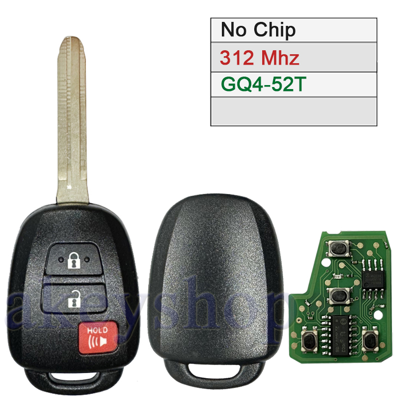 GQ4-52T, 312 Mhz, No Chip Toyota 2+1 button Remote control Key
