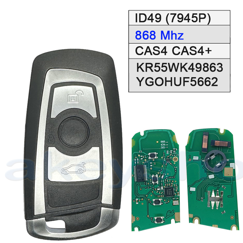 (KR55WK49863/YGOHUF5662) BMW Cas4 Cas4+ ID49 (7945P) Chip, 3 Button, 868 Mhz, Keyless, Remote Control Key