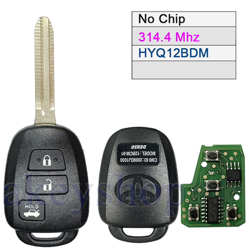 HYQ12BDM, 314.4Mhz, No Chip Toyota 3 button Remote control Key