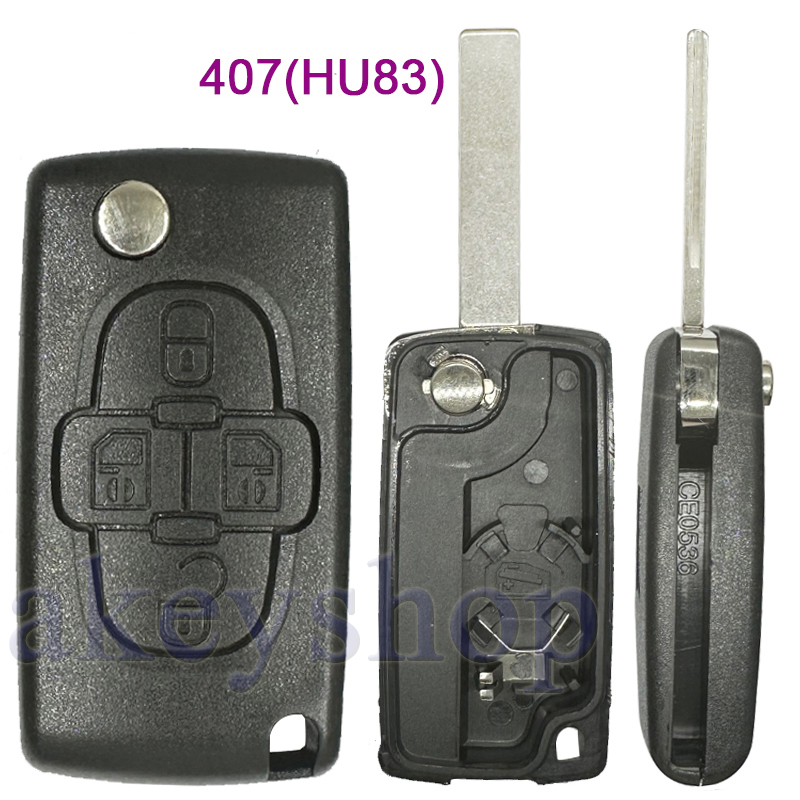 0536 Citroen 407(HU83) Blade 4 Buttons With Light Button Remote Control Key Shell With Battery Holder