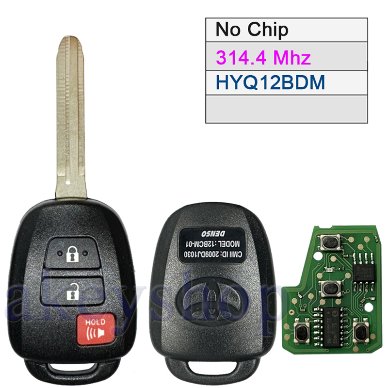 HYQ12BDM, 314.4Mhz, No Chip Toyota 2+1 button Remote control Key