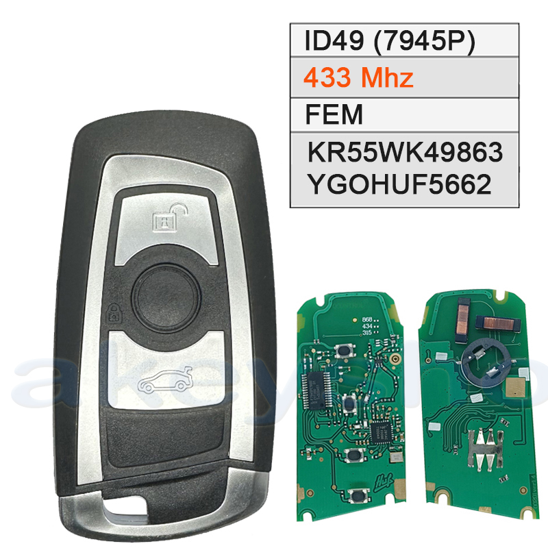 (KR55WK49863/YGOHUF5662) BMW Fem ID49 (7945P) Chip, 3 Button, 433 Mhz ,Keyless ,Remote Control Key