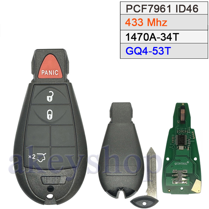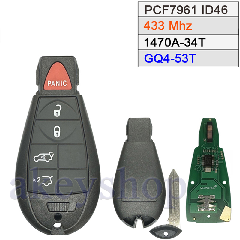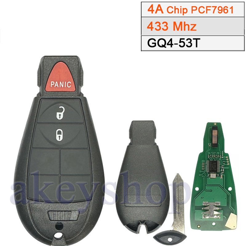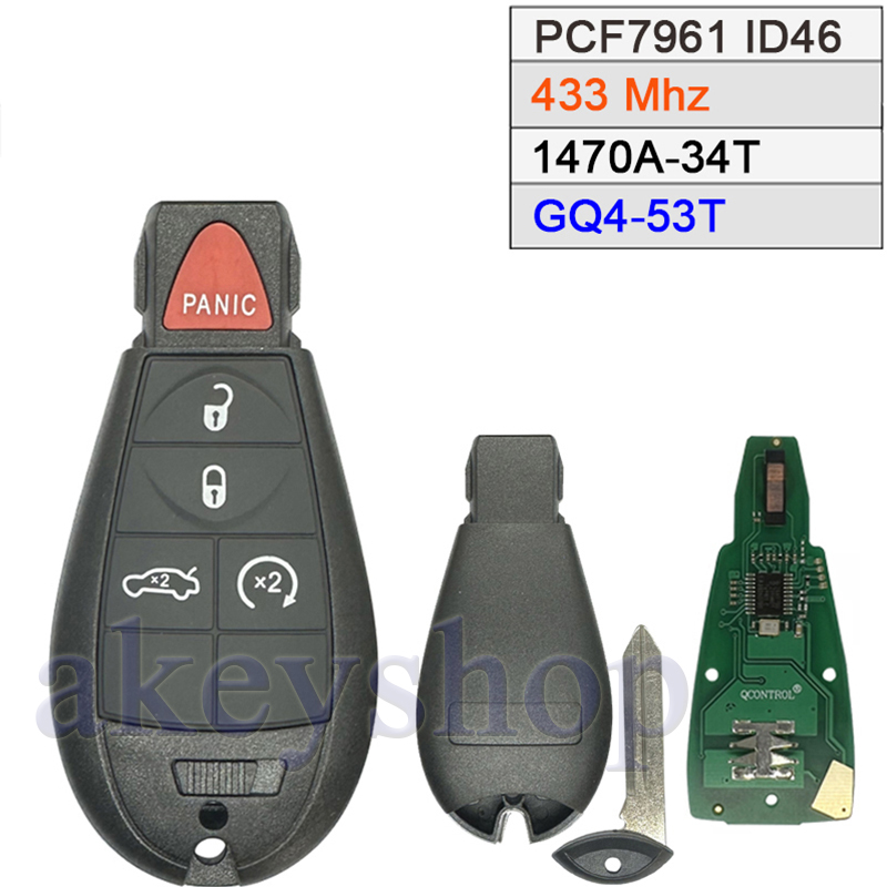 4A (PCF7961)Chip, (Gq4-53T), 433Mhz, Chrysler Remote Control Key, With CY24 Blade