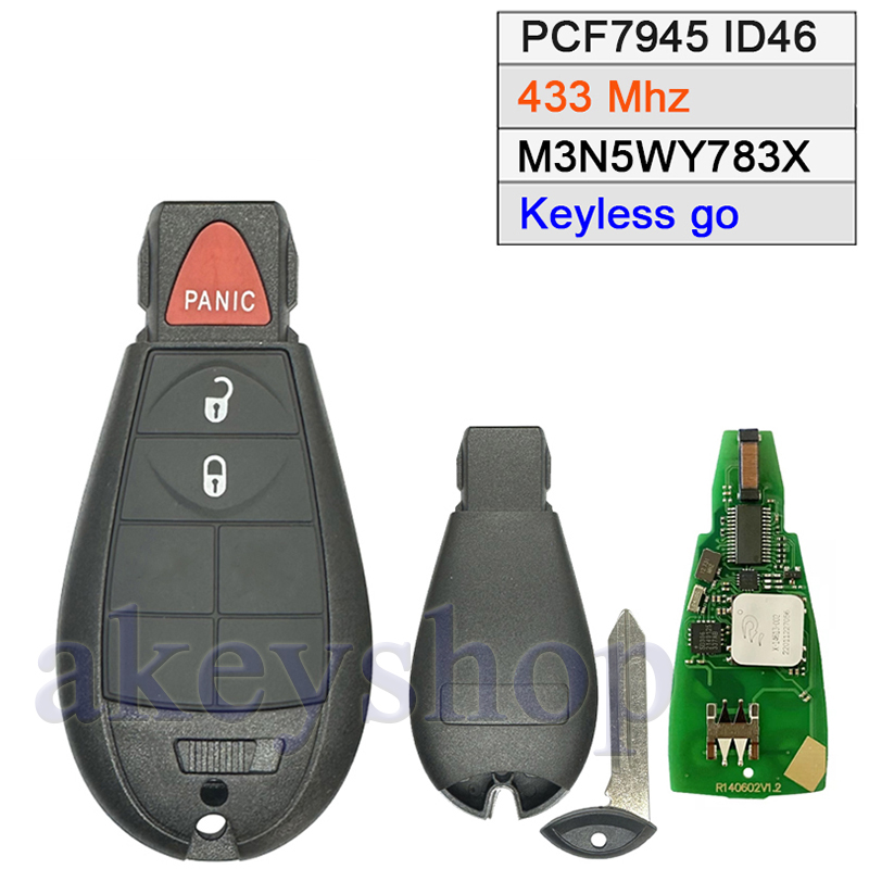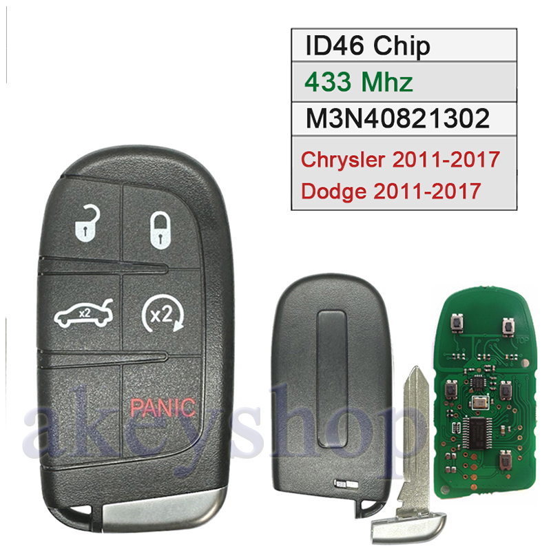 2 Button, 433Mhz , PCF7953 / 7945 ID46 Chip, (Fcc:M3N40821302) ,Smart Key Card, For Chrysler 2011-2017,Dodge 2011-2017, With CY24 Blade