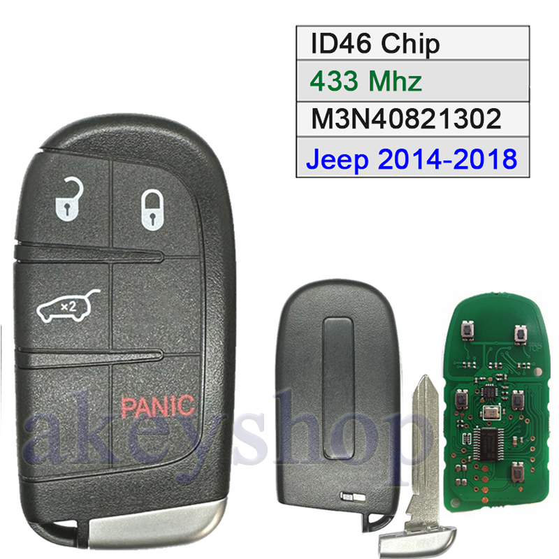 4 Button, 433Mhz , PCF7953 / 7945 ID46 Chip, (Fcc:M3N40821302), Smart Key Card, For Jeep 2014-2018, With CY24 Blade