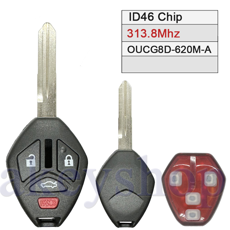 3 Button 313.8Mhz, ID46 Chip (FCC:OUCG8D-620M-A)Right Blade Mitsubishi Remote Control Key No Logo