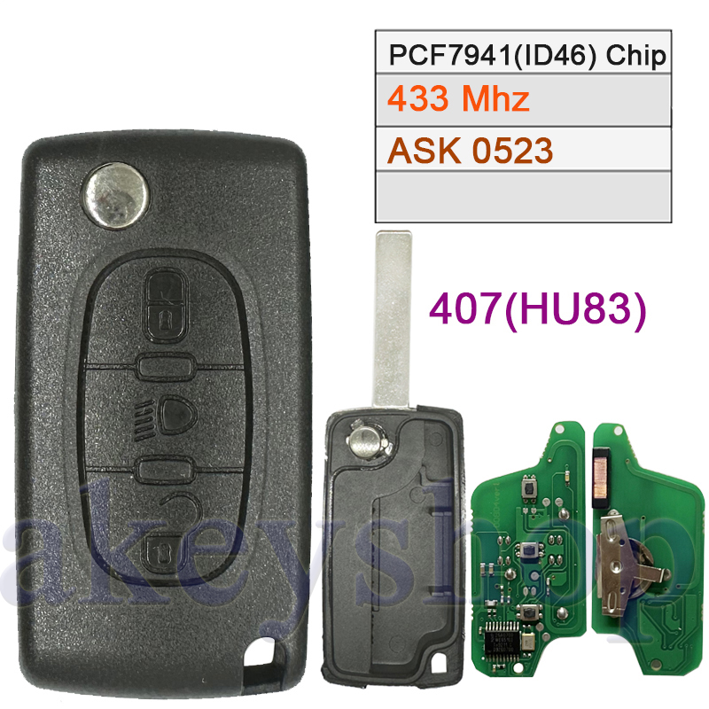 433Mhz, 7941 And PCF7961 ID46 Chip, 206(NE73) Blade Peugeot Remote Control Key