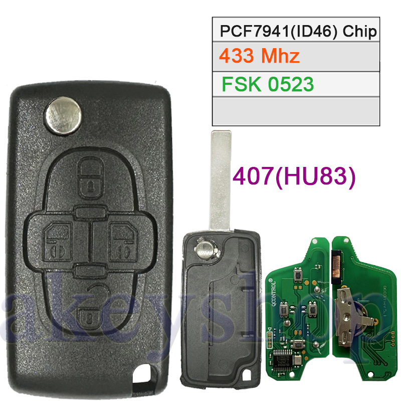 FSK 0536, 433Mhz, PCF7961(ID46) Chip, 307 (VA2) Blade,3 Button Peugeot With Light Button Flip Remote Control Key After 2011