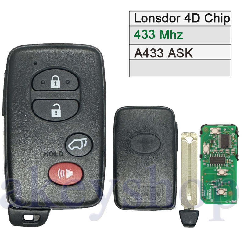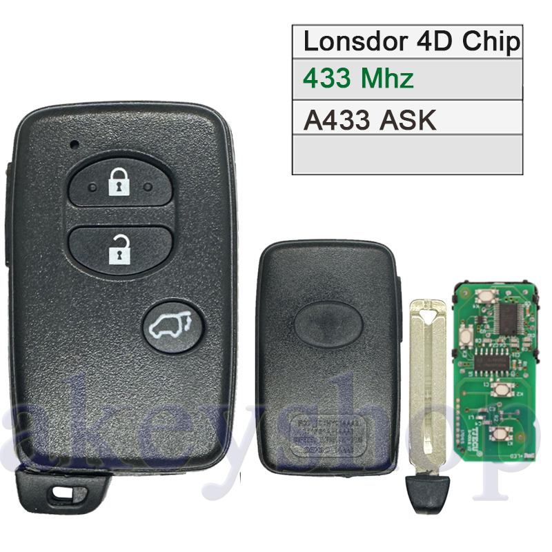 HYQ12BBY, 314.4Mhz, 4D67 Chip, 2+1 button modified Toyota Remote control Key