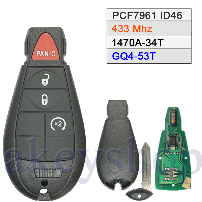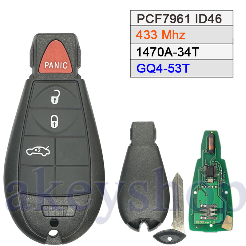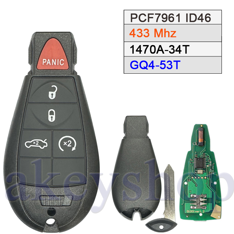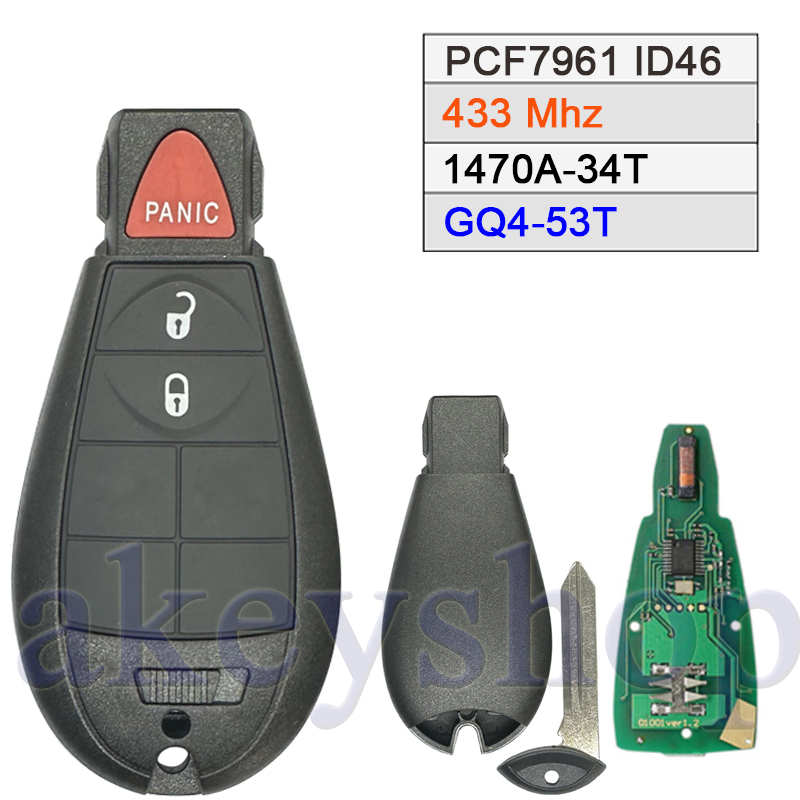 No logo 433Mhz PCF7961 & 46 Chip(FCC ID: GQ4-53T) Ic: 1470A-34T Remote Control Key With CY24 Blade